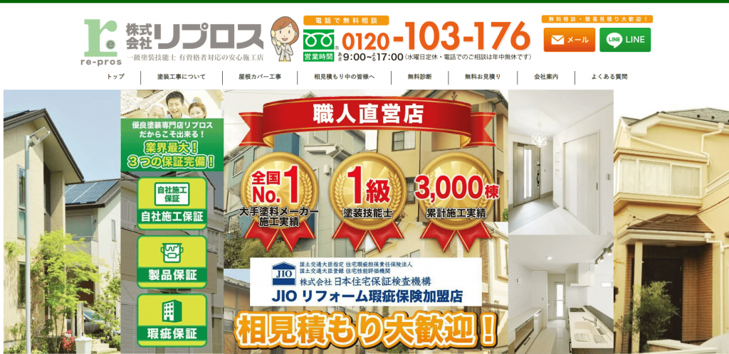 埼玉県川越市に本社を置き、関東エリアで展開する塗装専門店です。リプロスの基本情報と特徴は以下のとおりです。