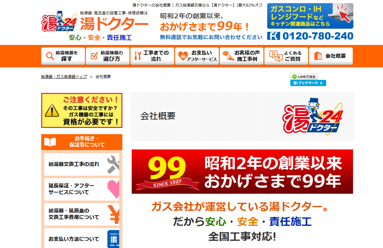 | 街角給湯器相談所 | 工事費込みセット | 年中無休 24時間受付可能 |